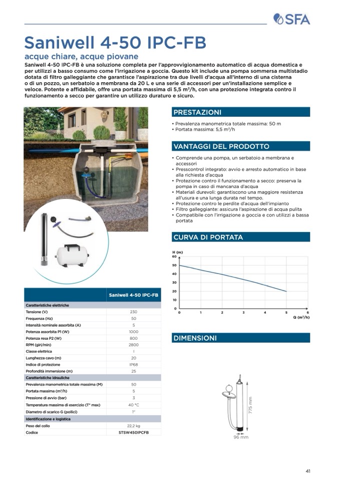 o di un pozzo, un serbatoio a membrana da 20 L e una serie di accessori per un’installazione semplice e