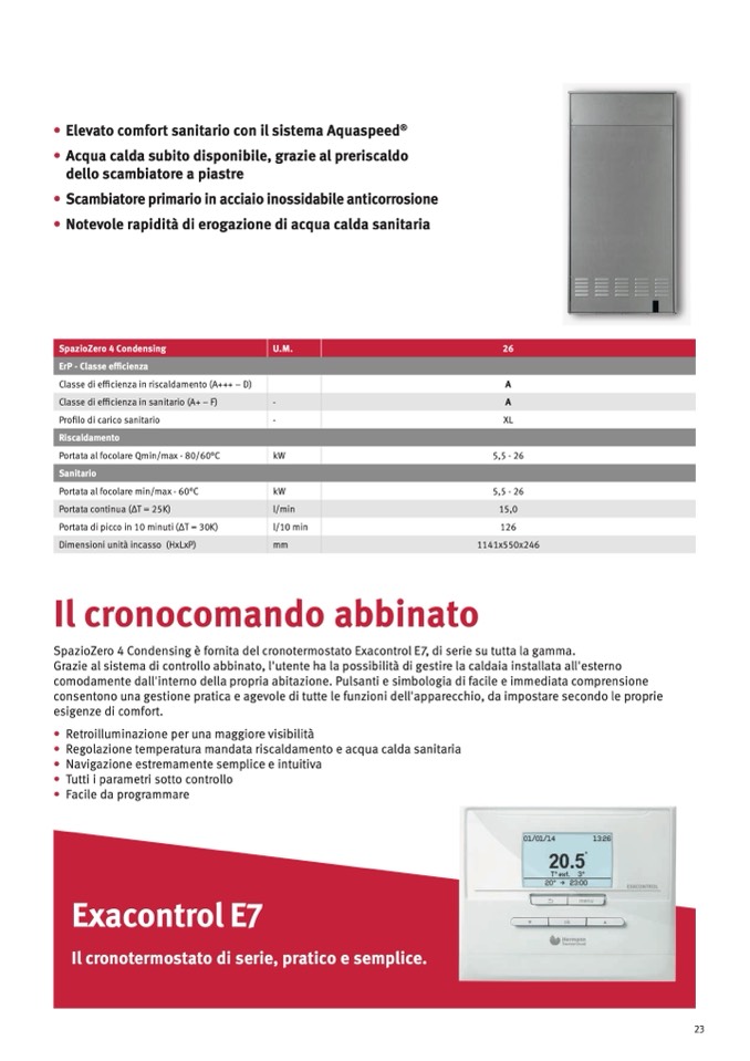 SpazioZero 4 Condensing è fornita del cronotermostato Exacontrol E7, di serie su tutta la gamma.