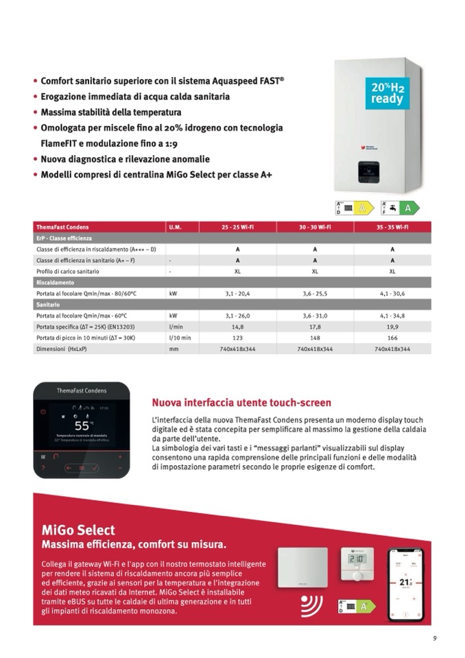 L’interfaccia della nuova ThemaFast Condens presenta un moderno display touc