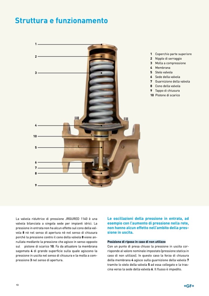 pressione in uscita nel senso di chiusura e la molla a com-