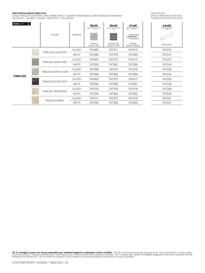 3D: Si consiglia la posa con stucco epossidico per ambienti bagnati o sottoposti a forte umidità. / 3D: We recommend laying with epoxy putty for wet environments or those subjec