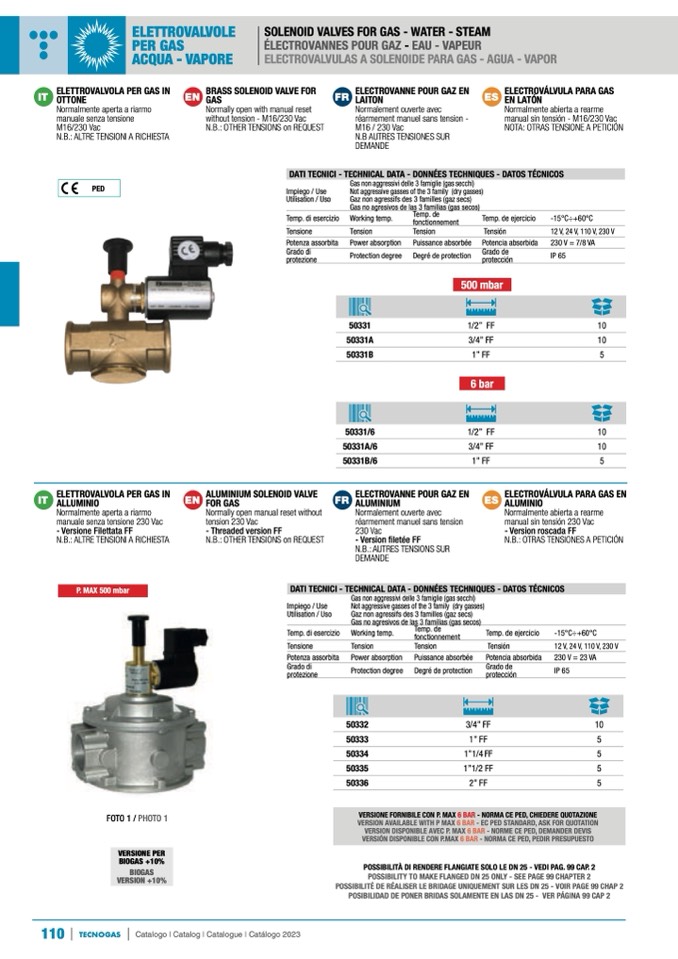 VERSION AVAILABLE WITH P MAX 6 BAR - EC PED STANDARD, ASK FOR QUOTATION