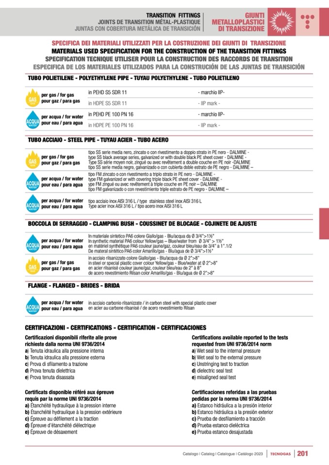 requested from UNI 9736/2014 norm