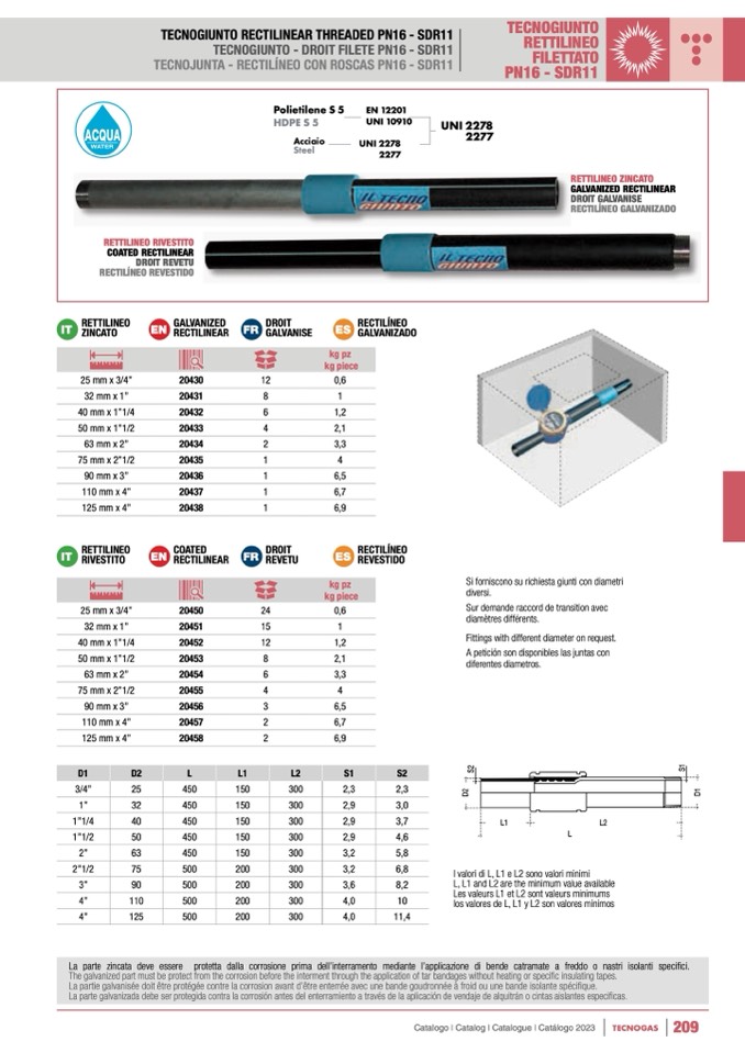 The galvanized part must be protect from the corrosion before the interment through the application of tar bandages without heating or specific insulating tapes.