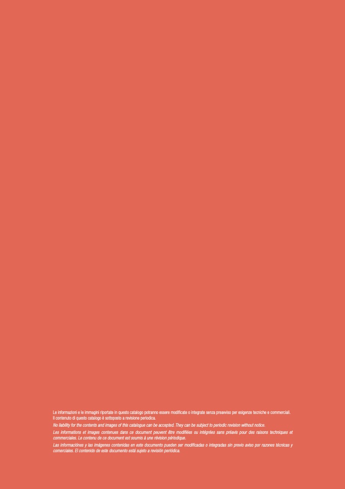 Le informazioni e le immagini riportate in questo catalogo potranno essere modificate o integrate senza preavviso per esigenze tecniche e commerciali.