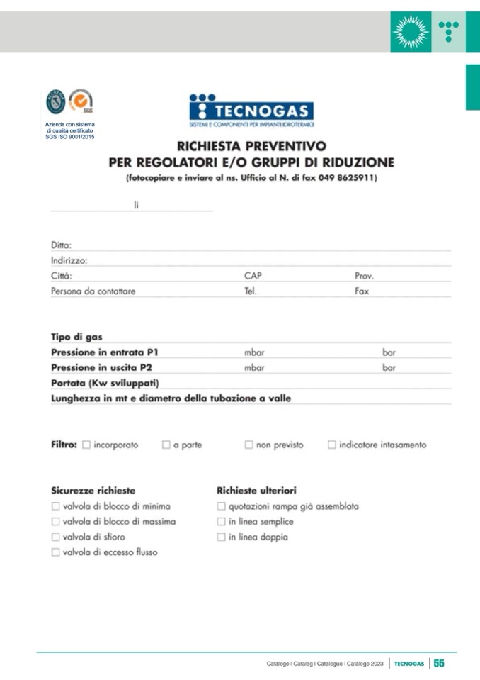 La compilazione dello spazio sottostante è a cura di Tecnogas