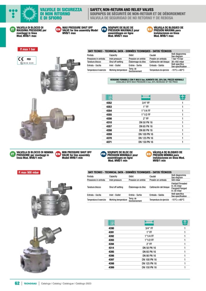 VERSIONE FORNIBILE CON P. MAX 6 bar, AUMENTO DEL 25% DAL PREZZO NORMALE