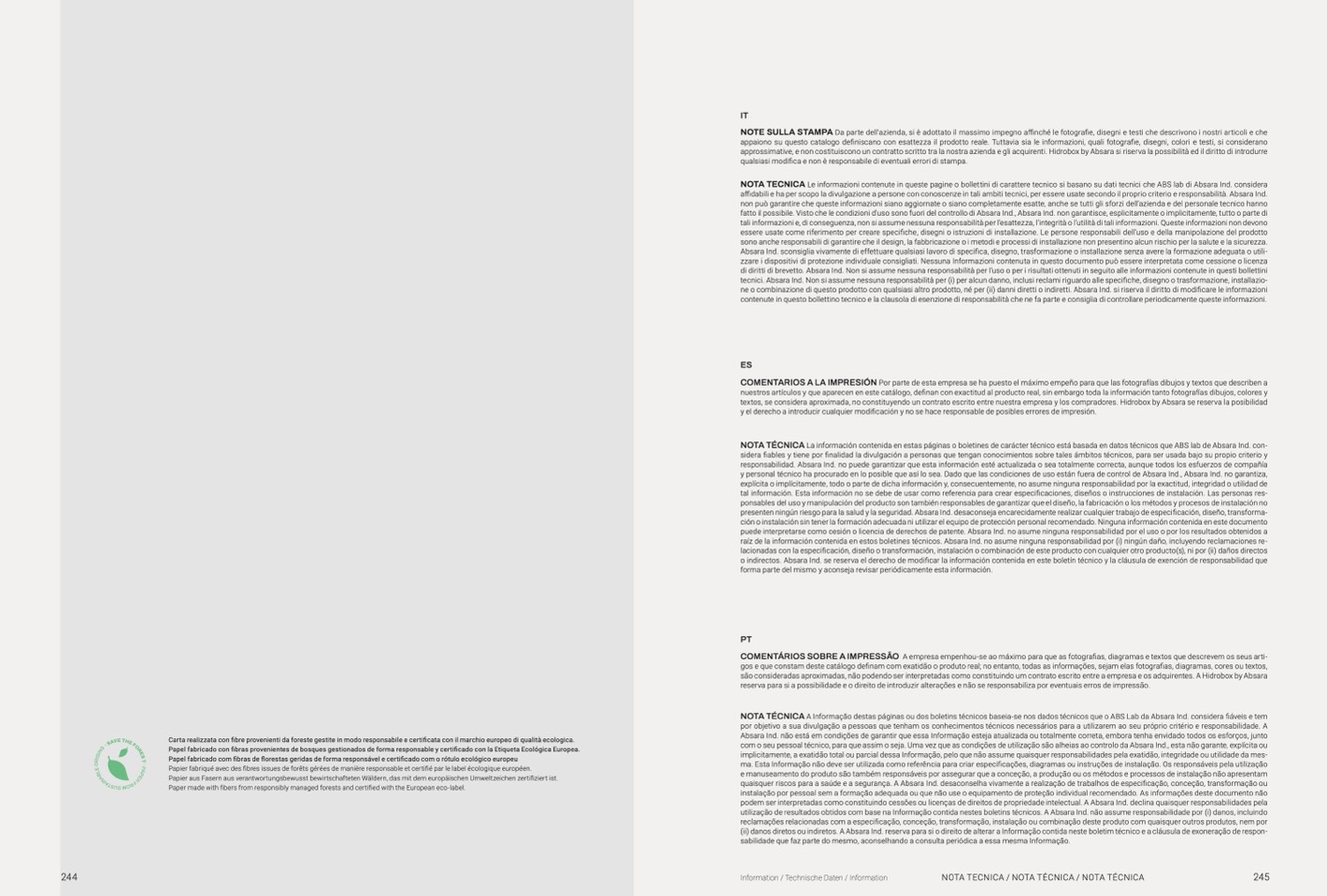 NOTA TÉCNICA A Informação destas páginas ou dos boletins técnicos baseia-se nos dados técnicos que o ABS Lab da Absara Ind. considera fiáveis e tem