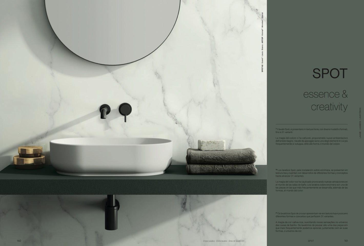Il lavabi Spot, si presentano in texture liscia, con diversi modelli e formati,
