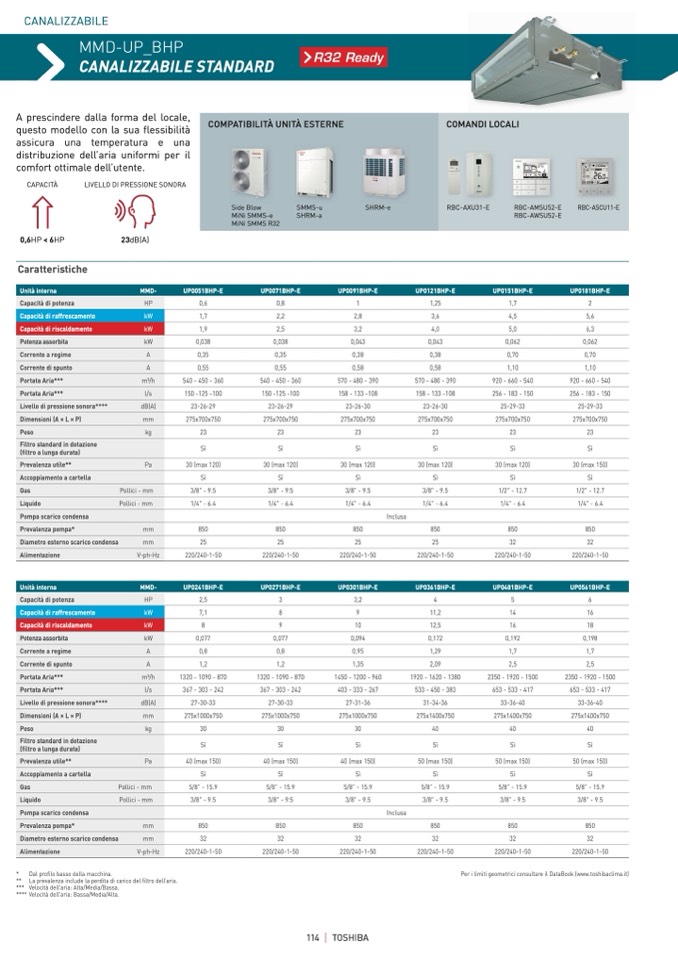 Per i limiti geometrici consultare il DataBook (www.toshibaclima.it)