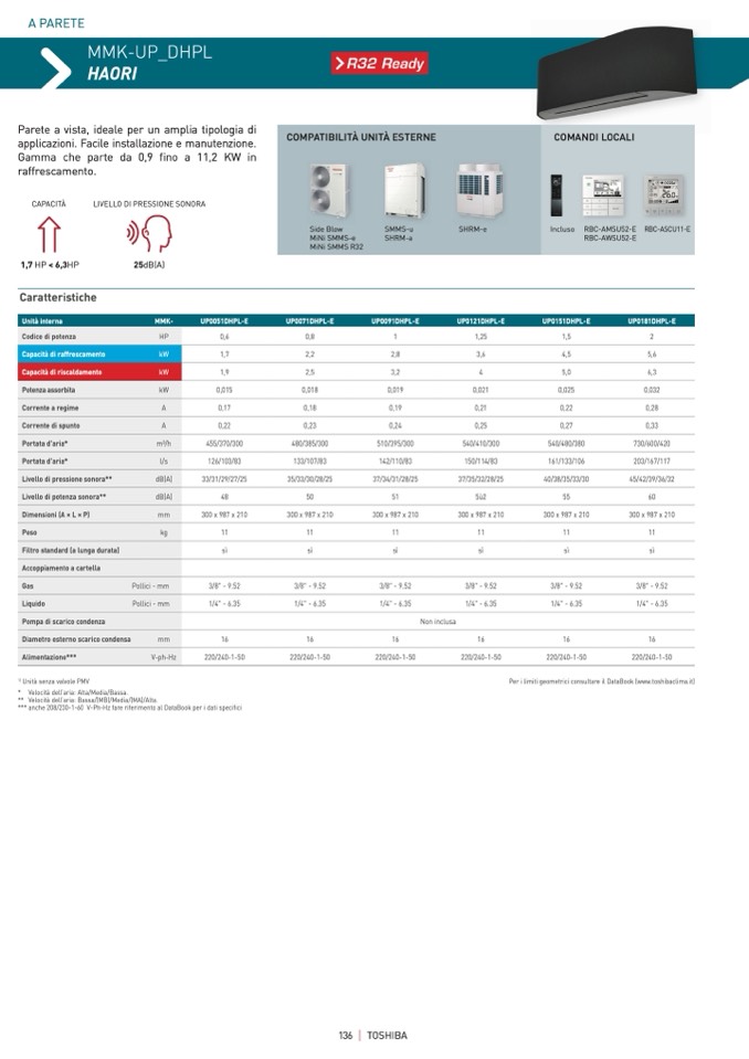 Per i limiti geometrici consultare il DataBook (www.toshibaclima.it)