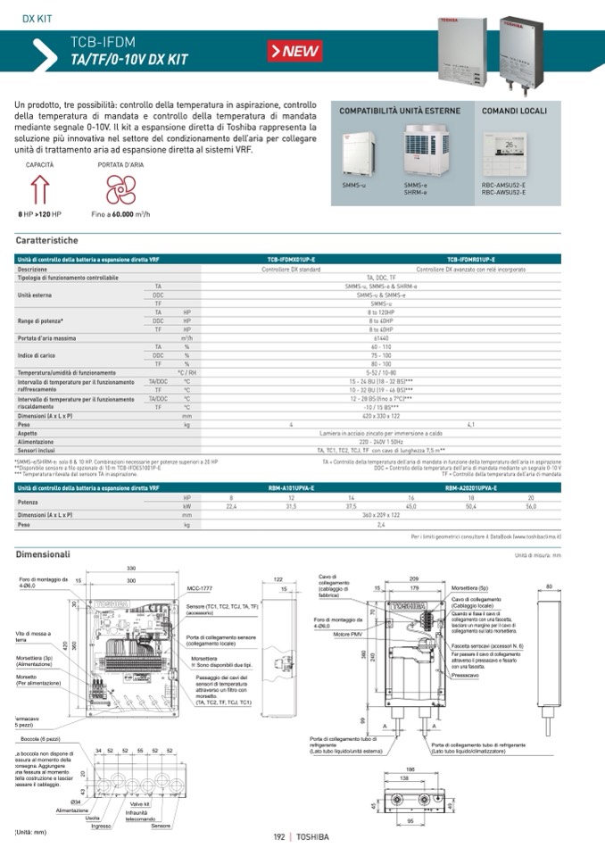 Per i limiti geometrici consultare il DataBook (www.toshibaclima.it)