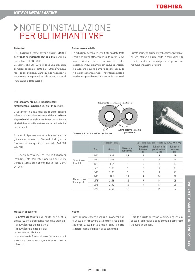 gli spessori minimi dell’isolante (lato gas) in