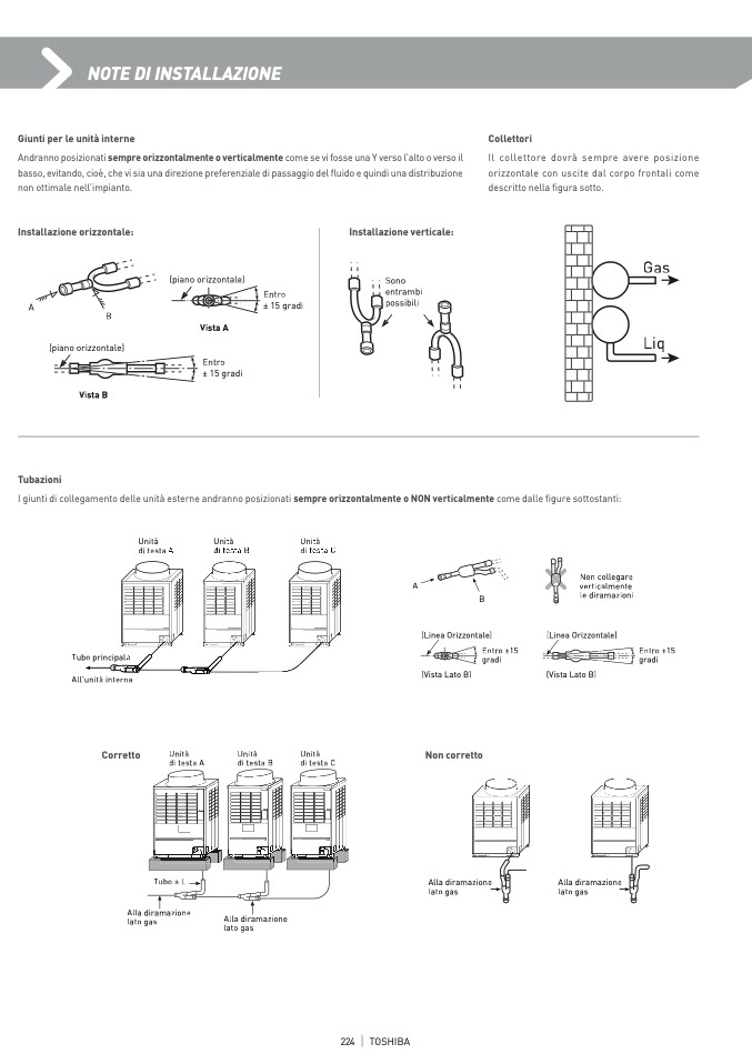 I giunti di collegamento delle unità esterne andranno posizionati sempre orizzontalmente o NON verticalmente come dalle figure sottostanti: