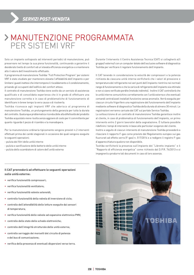 Toshiba per verificare il regolare funzionamento dell’impianto.