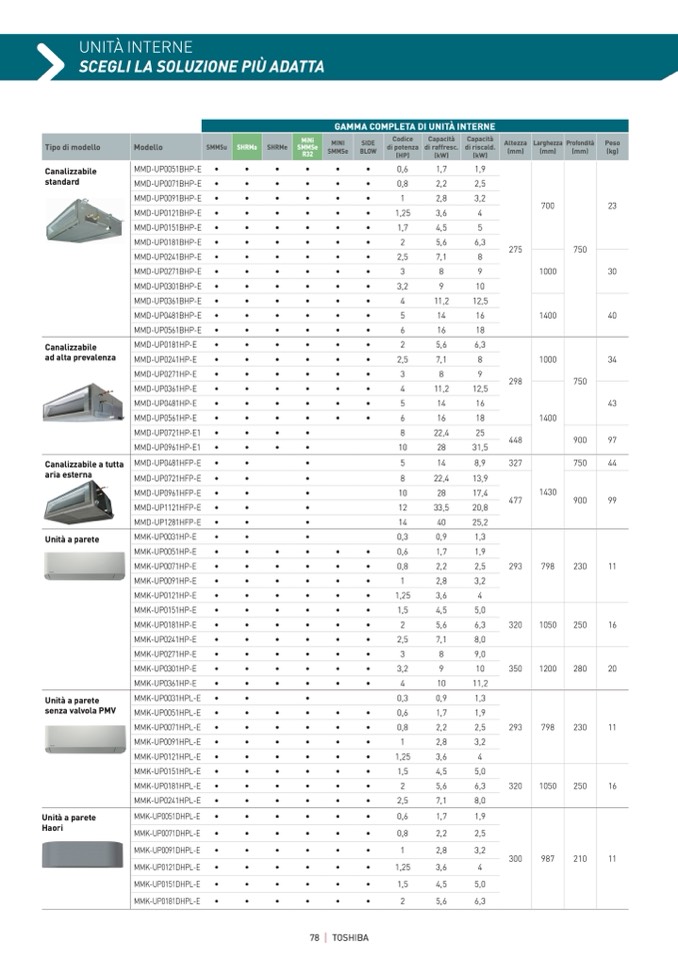 GAMMA COMPLETA DI UNITÀ INTERNE