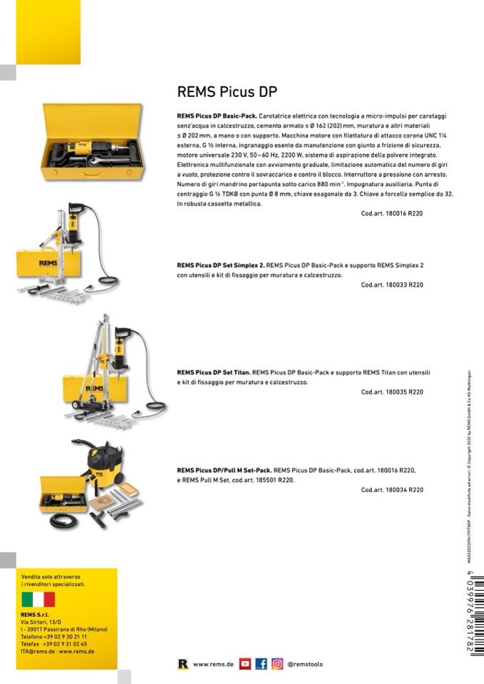 REMS Picus DP/Pull M Set-Pack. REMS Picus DP Basic-Pack, cod.art. 180016 R220,